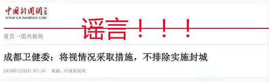 12月8日,部分网友及微信群内流传一张内容为“成都封城”的网络截图。