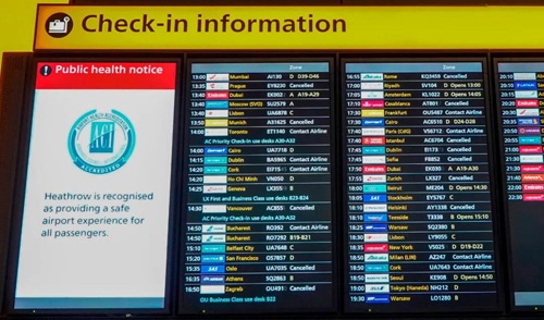 △当地时间12月21日,英国希思罗机场显示多国航班已被取消。
