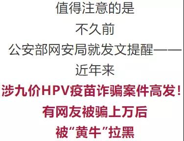 ①网上“代抢”“代预约”:“骗子”会通过各种网络平台,发布“代抢”“代预约”九价HPV疫苗的虚假消息,自称有医院预约名额,等待受害人主动联系。