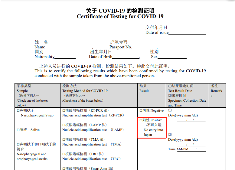 检验证明书中显示新冠病毒检测呈阳性的患者不可入境。
