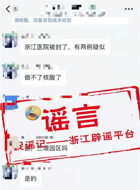 3月10日晚,网络流传“浙江医院三墩院区不能做核酸了”“浙江医院被封,有两例疑似”等多条传言。经记者核实,浙江医院目前一切正常,相关传言不实!疫情防控期间,请大家继续做好自我防护,不信谣不传谣,一切以官方发布为准!