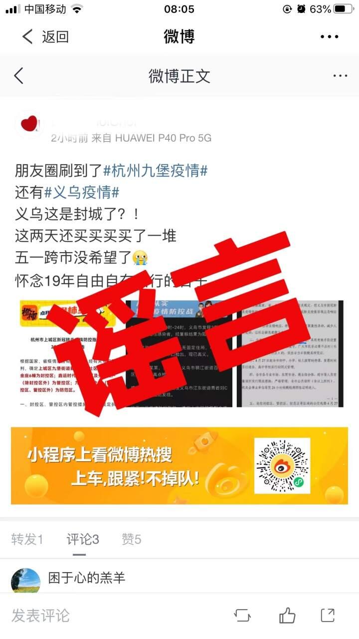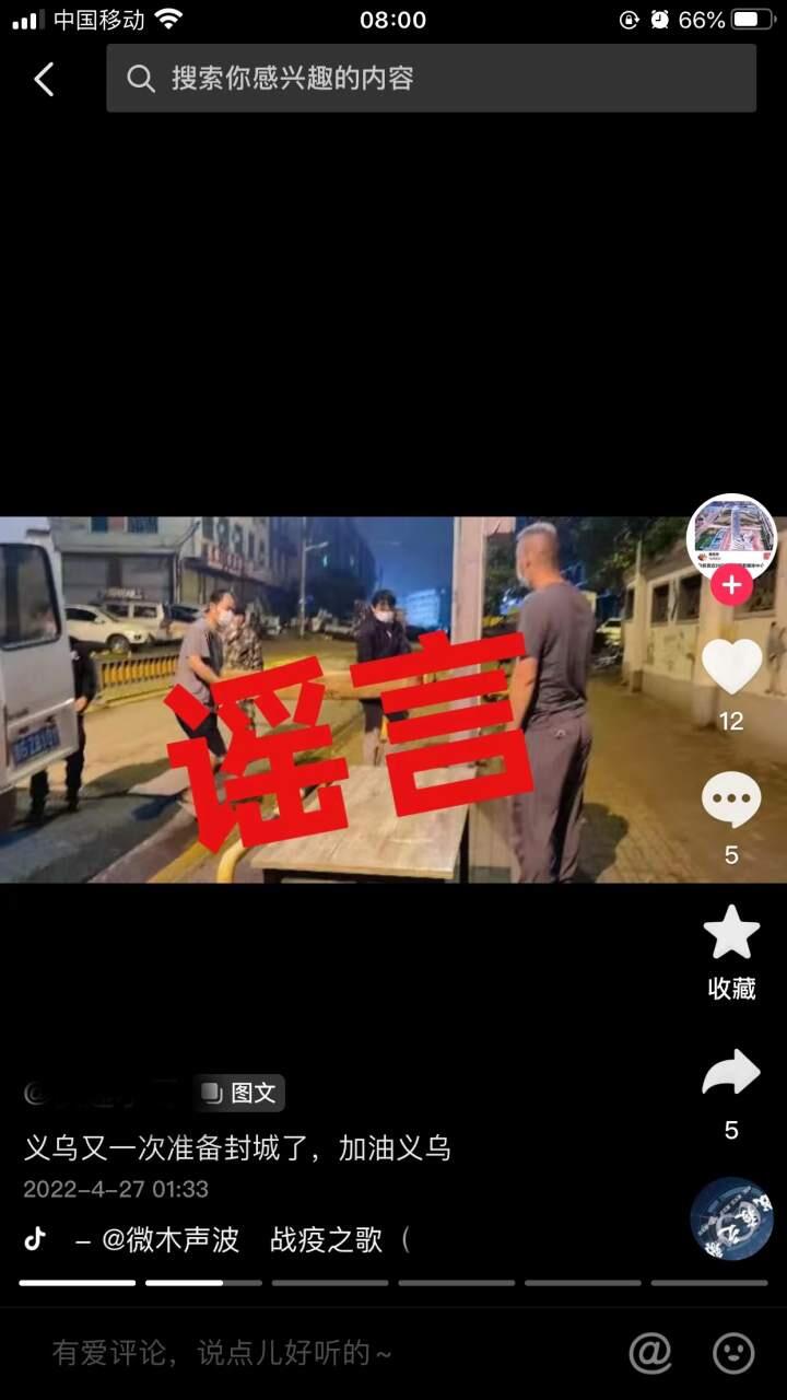 捉谣记 | “义乌要封城”传言不实 全市物资储备充足无需“过度屯粮” 2022-04-27 15:11 浙江新闻客户端消息 4月27日一早,“义乌要封城”的相关传言在网上不胫而走。记者从义乌相关部门了解到,“义乌要封城”等消息为谣言,是对义乌“静下来、慢下来”的疫情管理措施的错误解读。