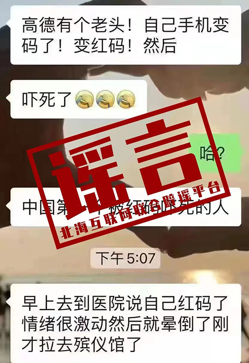 谣言三:某微信群内转发“因健康码变红码而发生意外”?