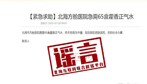 谣言一:网传“北海方舱医院急需65盒藿香正气水”?