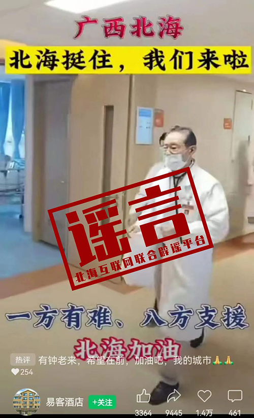 谣言五:网传视频“钟南山已到北海指挥”,说明事态严重?
