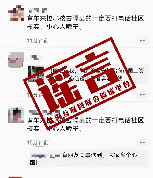 谣言四:由朋友圈转发的“有小孩被车拉去隔离,当心人贩子”?