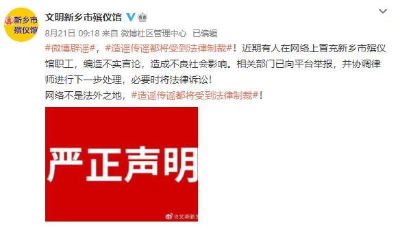 上一天夜班就1600元,连上一个月,岂不是月入近5万元?女子言论一出,引发众多网友讨论。 8月21日上午,河南新乡市殡仪馆官方微博发布声明称,近期有人在网络上冒充新乡市殡仪馆职工,编造不实言论,造成不良社会影响。相关部门已向平台举报,并协调律师进行下一步处理,必要时将法律诉讼。
