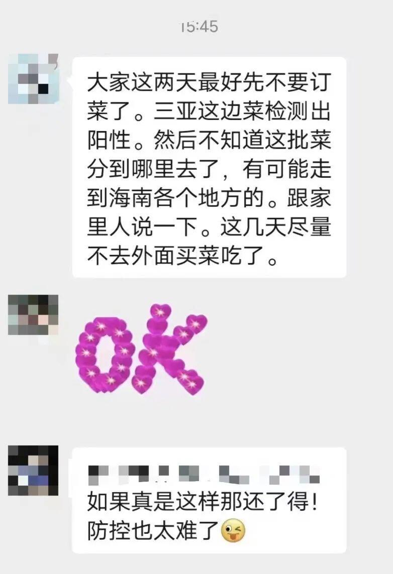 近日,有部分网友反映,在一些微信群流传出三亚蔬菜被检测出阳性且该批蔬菜流向不明的消息。