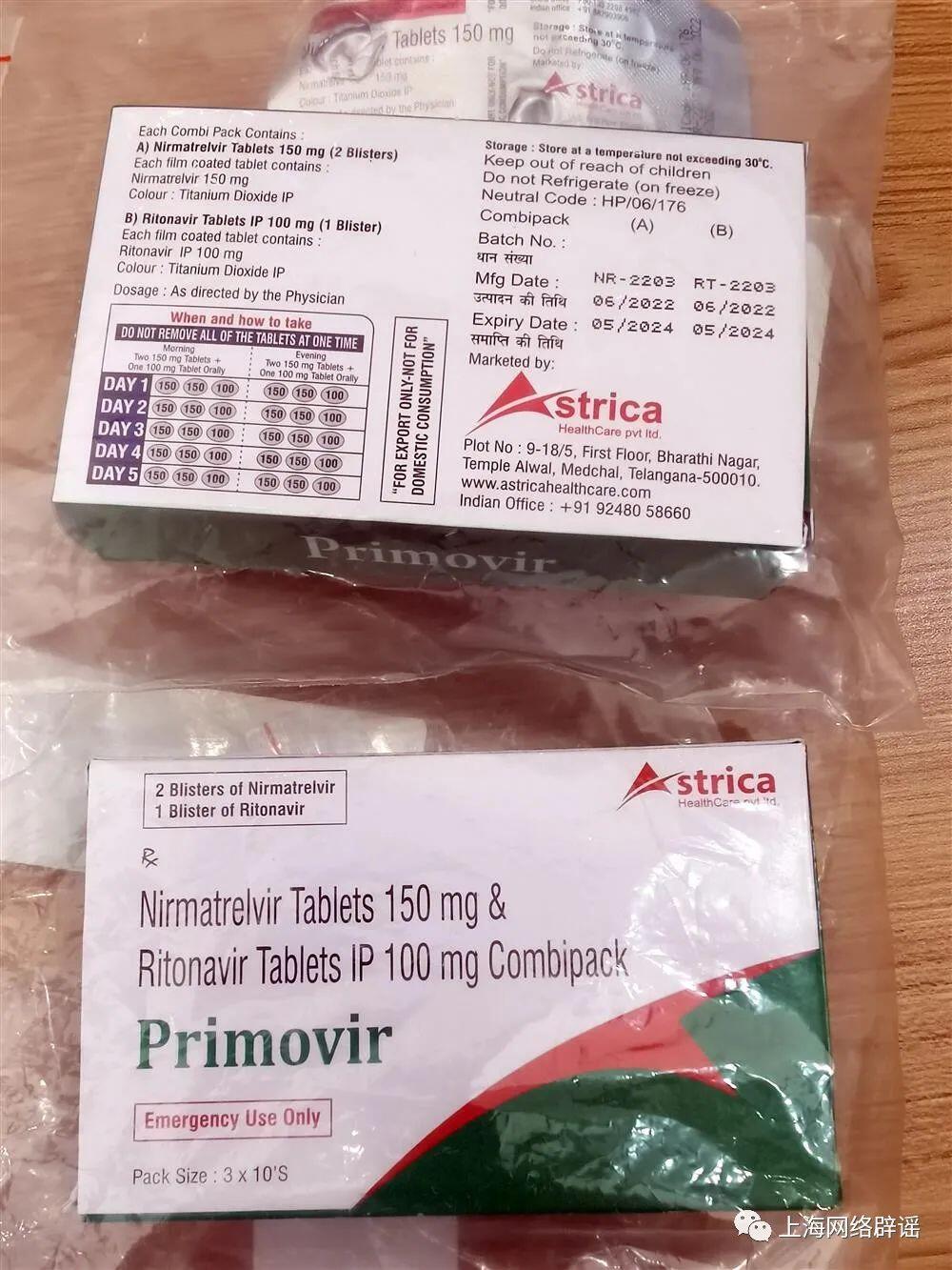 但事实上,近日多家媒体均报道称“印度产辉瑞新冠仿制药存在大量造假的现象”,尤其是绿色包装的Primovir中假货充斥。辉瑞Paxlovid中抑制病毒增殖的有效成分为“奈玛特韦”,“利托那韦”则是辅助成分。而国内销售的仿制药中,不少并无奈玛特韦成分。