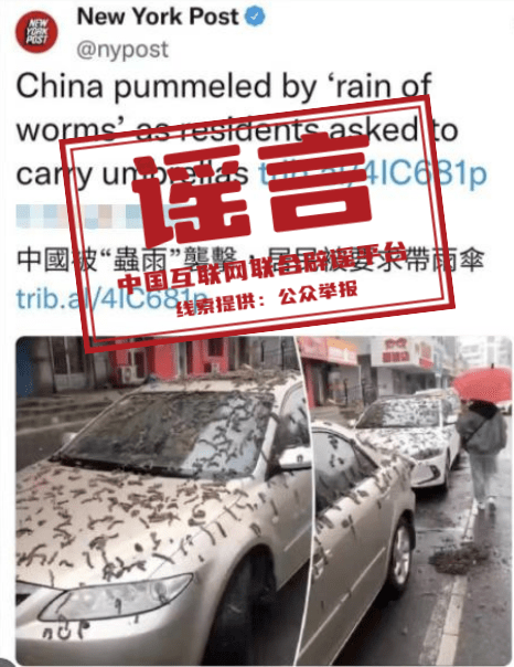 真相:近日,美国《纽约邮报》一则报道声称“中国遭遇‘虫子雨’,居民被告知出门打伞”,引发众多网友关注。实际上,报道中所谓的“虫子”不过是中国十分常见的杨树花,让外媒大呼小叫的所谓“生物灾难”,只是杨树花落在了车上。 杨树花是杨柳科植物毛白杨、加拿大杨或同属数种植物的雄花序。我国除广东、海南、云南、西藏外均有引种。杨树花还是一味中药,具有清热解毒、化湿止痢之功效。(来源:中国互联网联合辟谣平台)