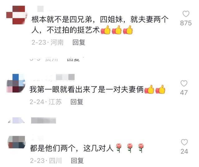 很多网友也看出了问题,纷纷留言:“根本不是四兄弟、四姐妹,就夫妻两个人”“我第一眼就看出来了,是一对夫妻”。