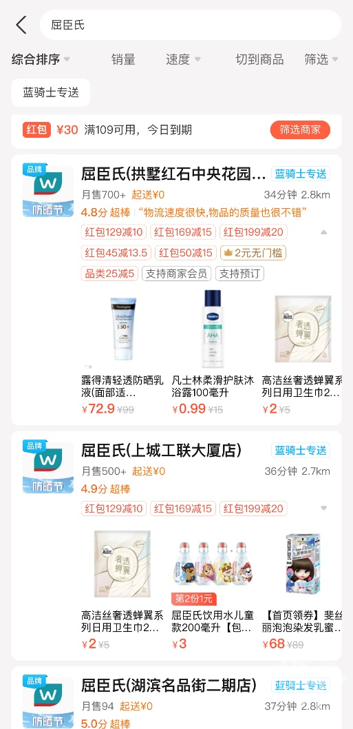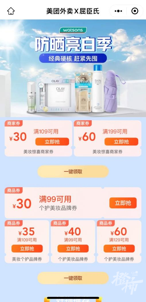 确实,相比线下门店,屈臣氏和饿了么、美团等平台合作的线上优惠力度相对会大很多,经常会推出大额优惠券来吸引顾客。