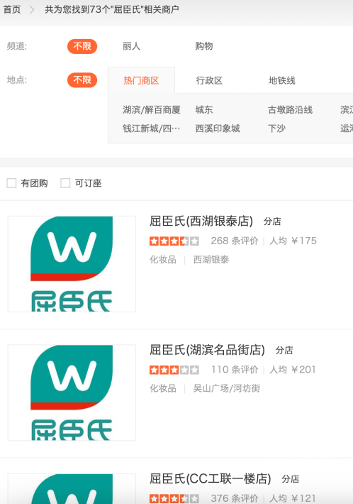 现在在大众点评网上搜索屈臣氏,能看到目前杭州正常营业的屈臣氏至少还有70多家,并未出现大面积闭店,它们多数依托于大型商业综合体开设。