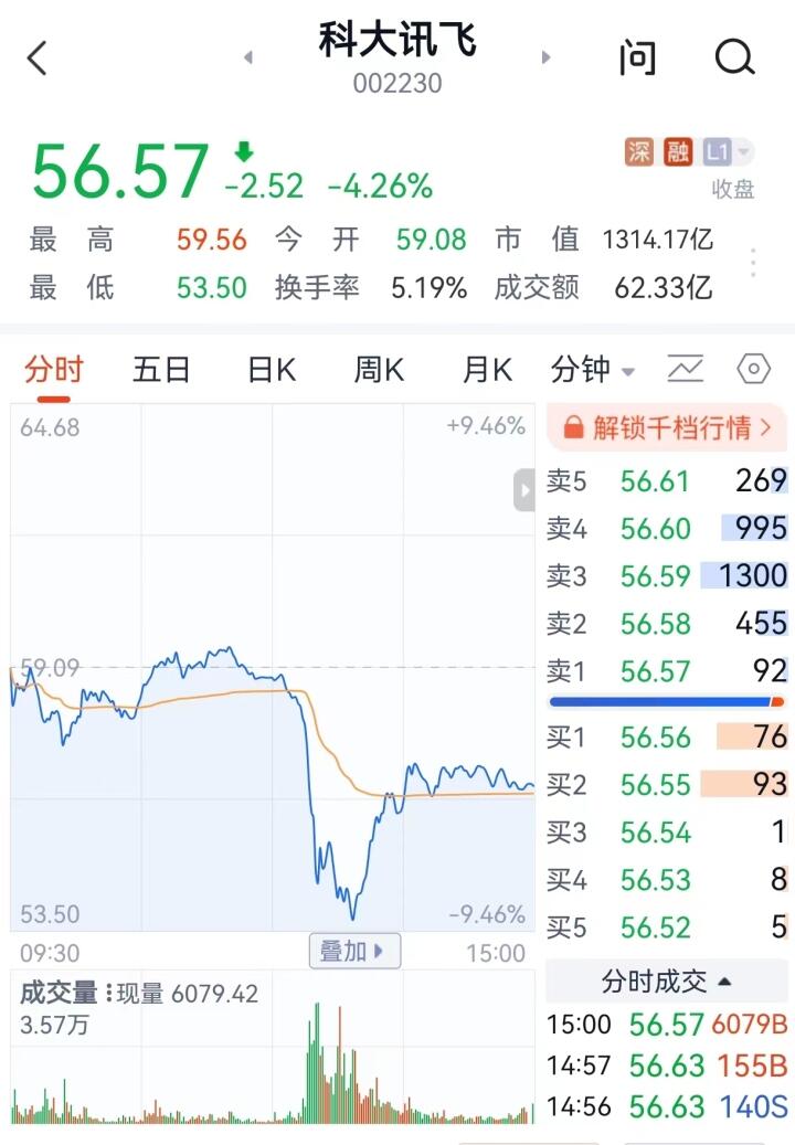 5月24日下午,科大讯飞股价突然跳水,一度下跌8.82%至53.88元/股。截至收盘,科大讯飞报价56.57元/股,当日下跌4.26%。 潮新闻记者了解到,5月6日,科大讯飞发布讯飞星火认知大模型,并在5月18日的世界智能大会上进行了全国首展。作为AI领域的头部企业之一,为何突然大跌? 对此,科大讯飞回应潮新闻表示,“股价下跌系某生成式AI写作虚假小作文导致,谣传风险为不实消息。”