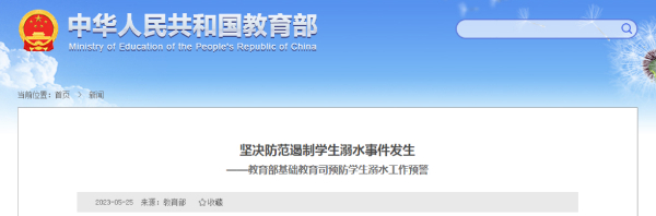 近期,全国各地气温迅速回升,汛期即将来临,溺水事故进入高发期。为切实保障学生生命安全,教育部基础教育司5月25日发布预防学生溺水工作预警,提醒各地要以农村地区学校、村庄周边和学生上下学沿途水域为重点,全面排查安全隐患,完善安全警示标识,配置安全防护设施。
