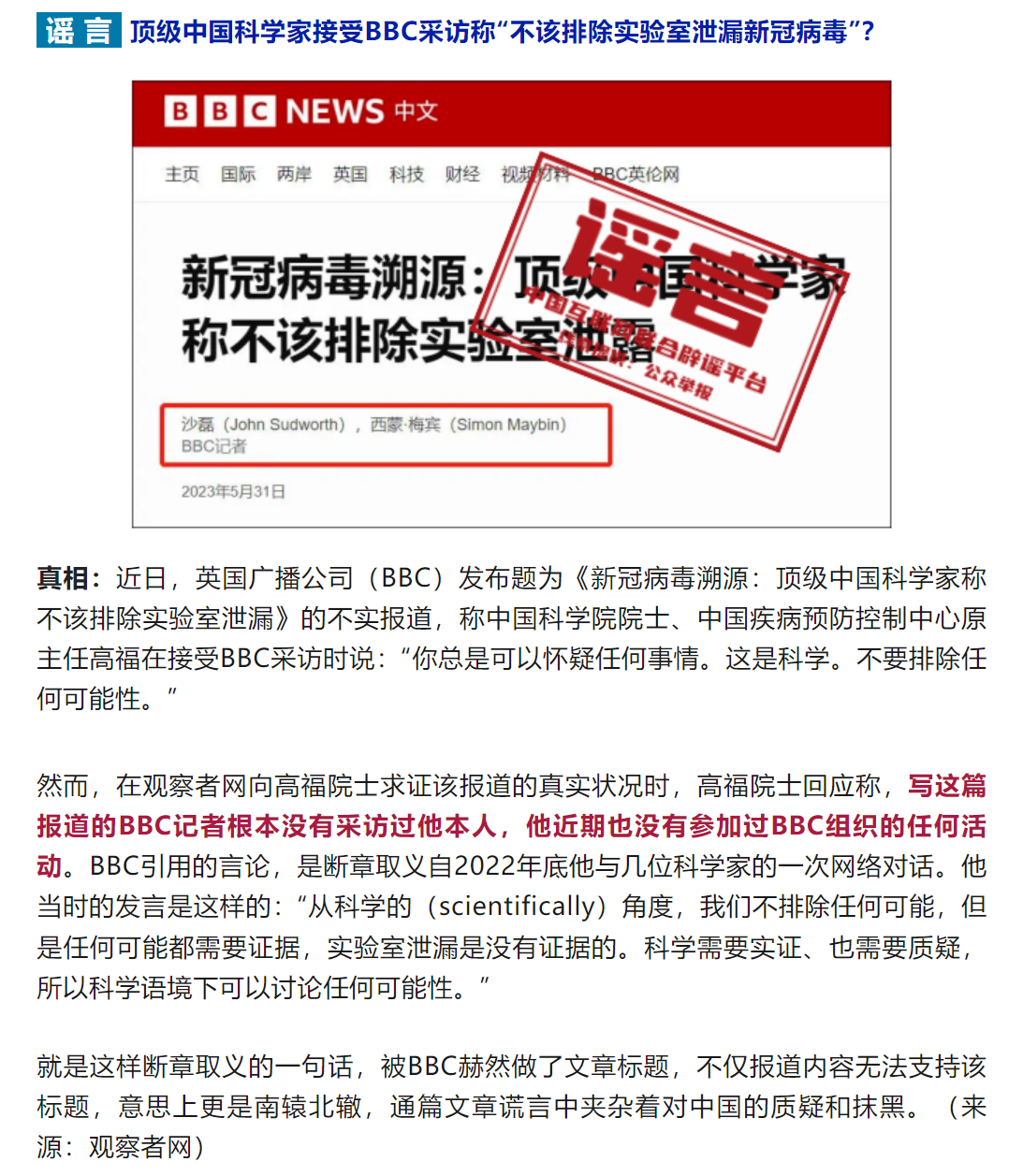 今日辟谣(2023年6月5日)