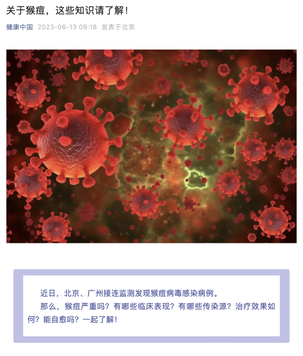 近日,北京、广州接连监测发现猴痘病毒感染病例。猴痘严重吗?有哪些临床表现?有哪些传染源?治疗效果如何?能自愈吗?6月13日,国家卫生健康委、国家疾控局发布信息,介绍猴痘诊疗和预防相关知识。
