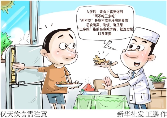 “三伏天”如何通过饮食养生?专家这样说 2023-07-20 10:40 新华社沈阳7月19日电 随着一年之中气温最高的“三伏天”来临,如何在入伏后通过饮食实现养生,成为很多人关注的话题。对此,辽宁省沈阳市中医院老年病科病房主任历飞表示,入伏后,饮食上需要做到“两不吃三多吃”。