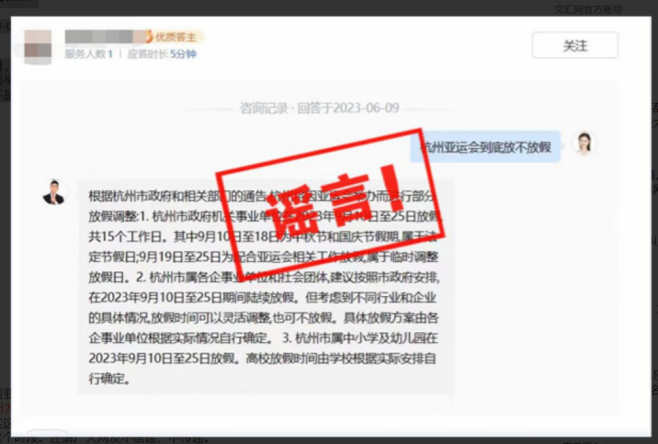 捉谣记 | 亚运期间关闭棋牌室?那些关于亚运会的网络谣言,你听到过几条 2023-07-24 21:50 今年杭州的亚运会,作为杭州乃至全国都是一大重要的赛事,获得了很高的关注度。 涉及亚运会的谣言也随之“风生水起”。 杭州因举行亚运会将于8月5日起关闭棋牌室?假!