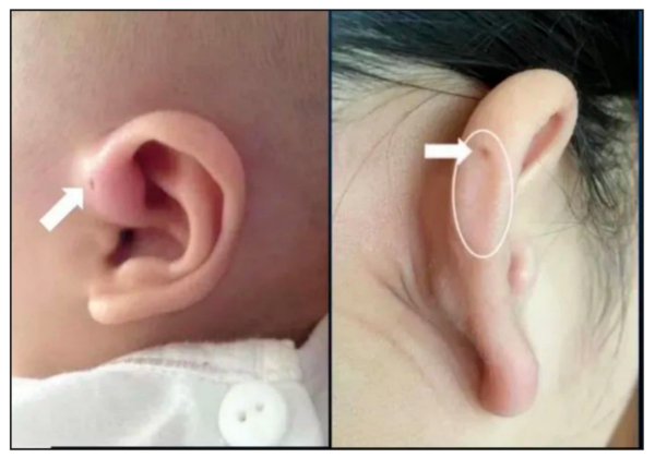 中国科学院古脊椎动物与古人类研究所盖志琨2023年在科普中国刊文分享,在人类胚胎发育到第四周的时候,依然会发育出类似鱼类的鳃弓和鳃裂的结构,只是在胚胎发育的后期,这些结构又愈合,发育成了颌骨、中耳腔、三块听小骨、喉软骨等器官。但如果“第一鳃裂”后期封闭不完全的话,就会在耳朵上留下这样的小洞。