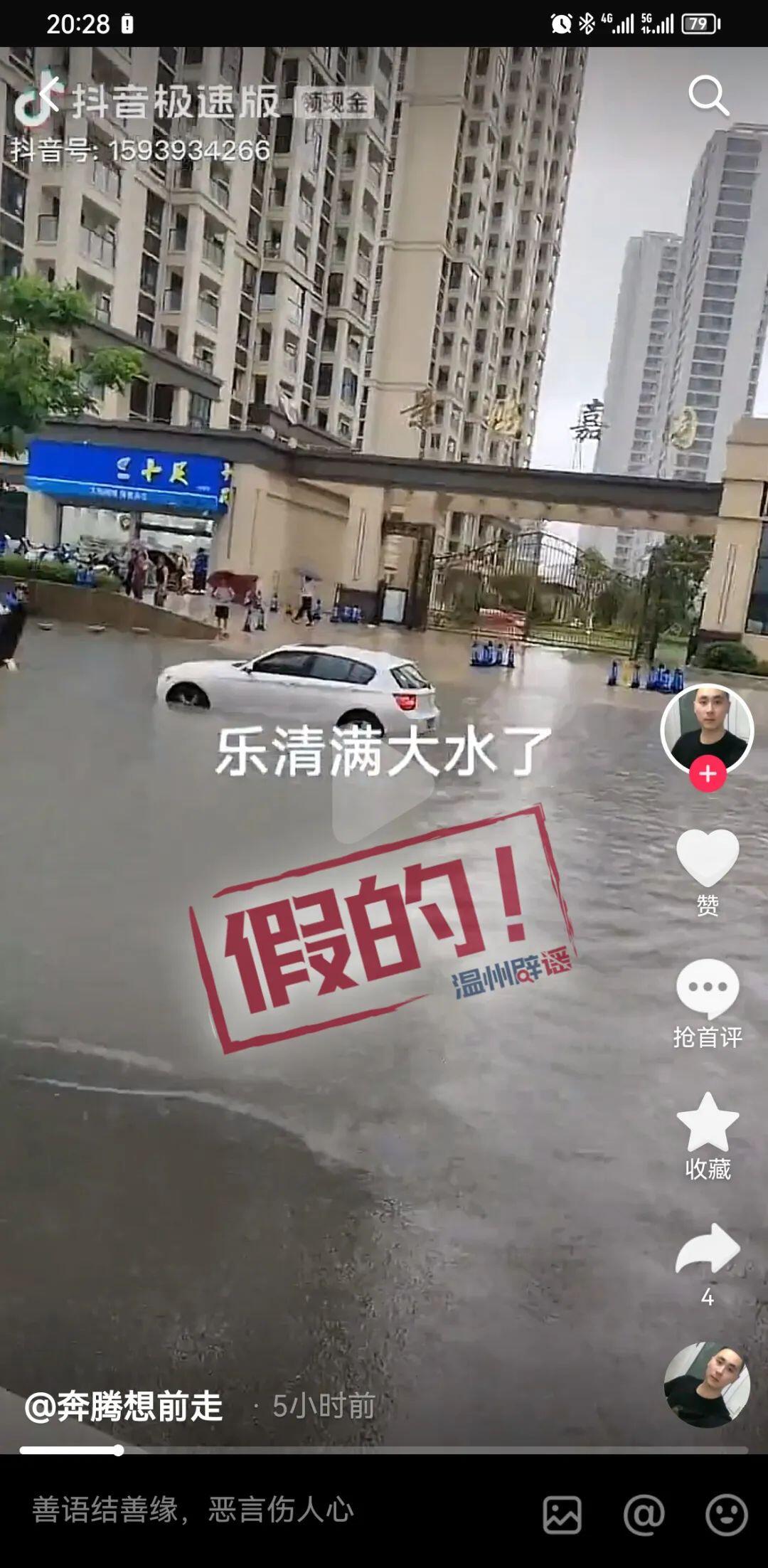 捉谣记 | 涉台风谣言,46人被查! 2023-08-04 10:22 “杜苏芮”台风影响温州期间,个别网民为吸睛引流,“张冠李戴”发布涉温州台风不实信息。对此,全市公安网安部门对网上涉台风不实信息开展专项巡查,对网上发布涉台风谣言信息逐一处置。期间,全市公安机关共查处发布涉台风谣言信息网民46人,其中行政拘留1人,教育45人。 01 典型案例 永嘉网民发布楠溪江道路被淹谣言视频。巡查发现,有网民在某音发布视频称,永嘉楠溪江道路被淹,视频中可见永嘉某道路积水严重,还有人员在道路积水上驾驶水上摩托。经属地核实,上述信息为翻炒旧闻,相关视频实为多年前的老视频。 经查,发布视频网民真实身份为潘某某(男,46岁)。网安部门协同属地永嘉公安将潘某某传唤至公安机关接受询问。经查证,该潘某某在一微信群内看到视频,误以为是发生在当日,故随手转发到其某音账号上,后自行删除。公安机关已对潘某某批评教育。 02 典型案例 乐清网民发布公路积水谣言视频。巡查发现,有网民在某音发布视频,视频中标有文字“乐清满大水了”,内容可见景屿嘉园与秀屿嘉园小区门口积水严重,道路中间停放的几辆汽车被淹没至车身一半。经核实,该视频并非发生在乐清。