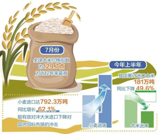 “为了确保大米进口稳定性,我国各类进口主体也在推进大米进口多元化,避免来源地和品种过于集中带来的进口安全风险。”彭超说。一方面,推进大米进口来源地多元化。我国大米进口来源地包括越南、缅甸、泰国、印度、巴基斯坦、柬埔寨等主产国。从去年10月起,我国开始逐步减少印度碎米进口,印度已从过去几年中国最大的大米供应商滑落至第四位。另一方面,推进粮食进口品种多元化。减少大米进口的同时,增加饲用小麦进口。今年上半年,我国小麦进口量达到792.3万吨,较去年同期增长62.1%,能够有效对冲大米进口下降对国内饲料市场的冲击。