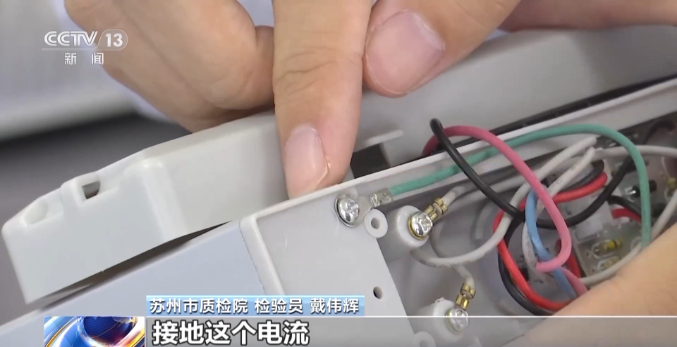 苏州市质检院 检验员 戴伟辉:像这款灭蚊器它接地螺钉是直接拧在我们的塑料件上面的,塑料件在长时间使用过程中,也有可能会变形,甚至熔化。一旦绝缘失效的时候,接地这个电流,它是直接流到人体,而非流入到大地,导致人发生触电。其次接地螺钉这边缺少一个弹性的一个金属垫片,长时间使用过程中,接地螺钉肯定会松动,导致接地不可靠。