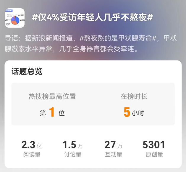 前一段时间,熬夜的话题又又又上了热搜。话说“仅 4% 受访年轻⼈不熬夜”,看到这⾥,平时晚睡的你估计会有一丝丝安慰:嗯,看来,我并不孤独。