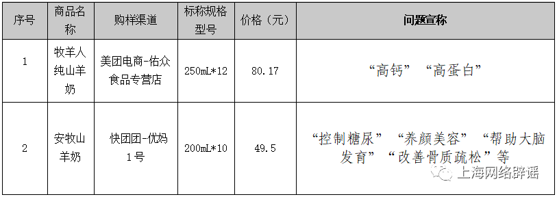 注:根据GB28050《食品安全国家标准 预包装食品营养标签通则》和中国食品标签营养素参考值规定,每100mL液态奶中蛋白质≥6.0g可进行“高蛋白质”宣称,每 100 mL液态奶中钙含量≥120mg可进行“高钙”宣称。牧羊人纯山羊奶的钙和蛋白质含量实测值未达到上述宣称要求。