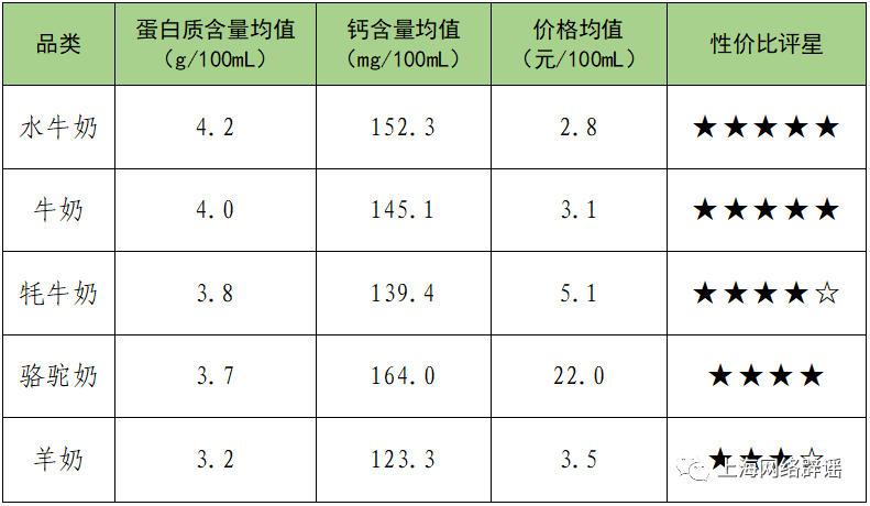 综合价格来看,水牛奶和牛奶的性价比最高。