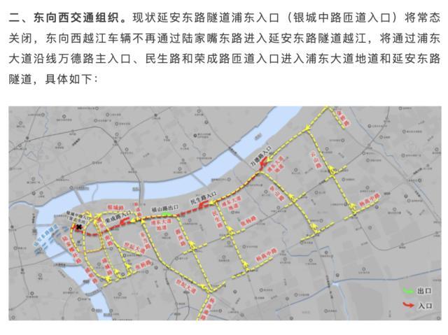 上海市政府在去年12月19日发布的通知中表明,浦东大道地道工程于2022年12月23日通车后,浦东延安东路隧道银城中路匝道入口将常态关闭。