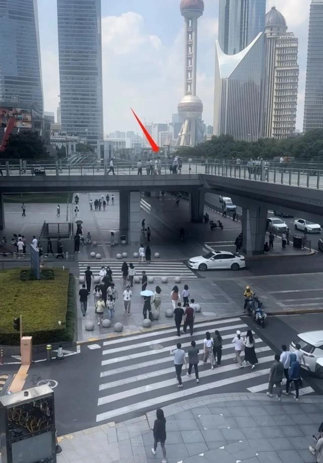 网传第二张图拍摄点位于陆家嘴环路的连廊天桥上。