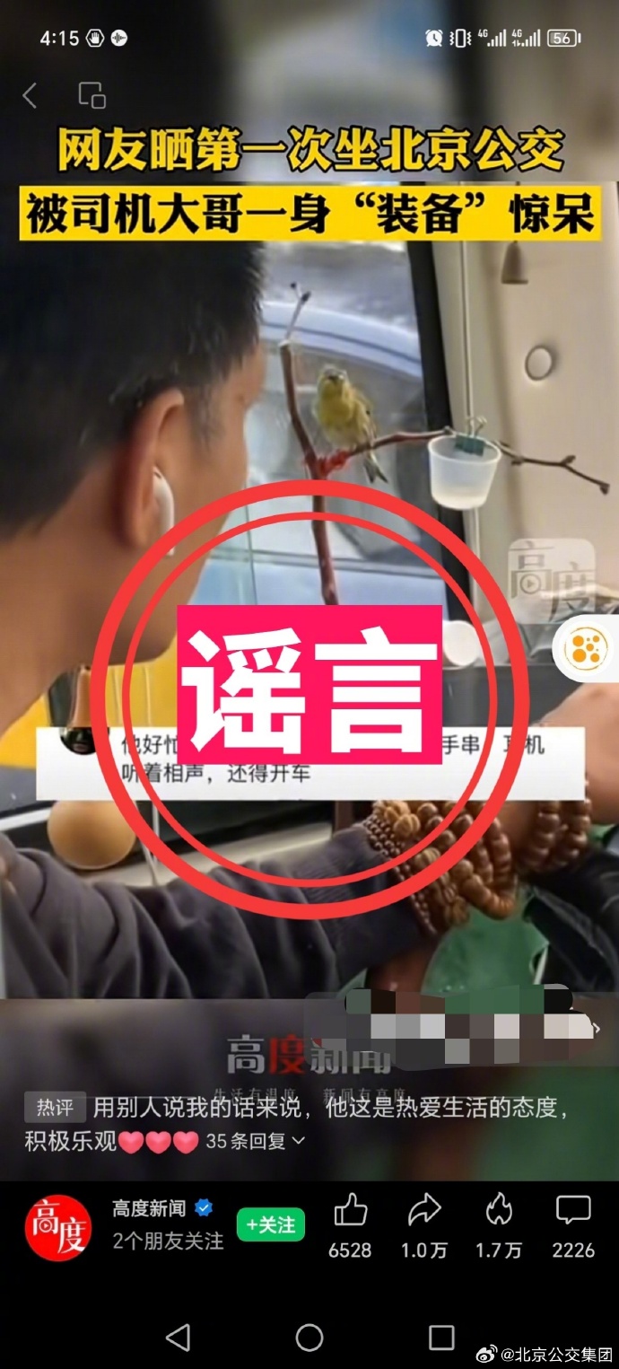 经查视频中运行车辆非北京公交集团运营车辆,为个别账号杜撰编造。请广大网民不信谣!不传谣!