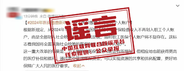 谣言:2024年职工医保缴费将不再划入个人账户?