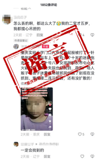 近日,有网民在某网络平台上发帖称“酉阳广场人贩子将孩子迷晕”。经向酉阳县相关部门核实,该信息为谣言。