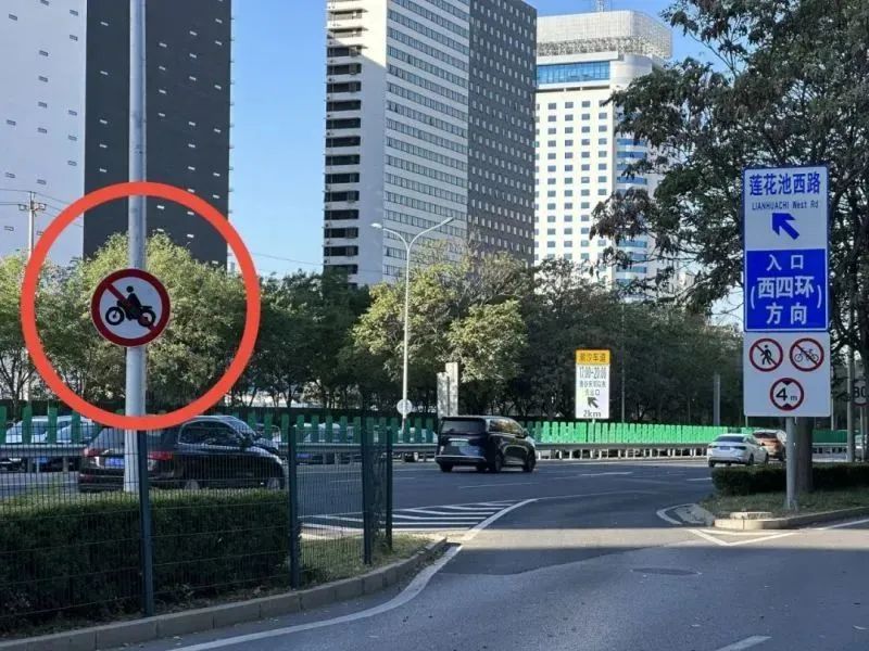 莲花池西路增设“摩托车禁行”交通标识/记者拍摄