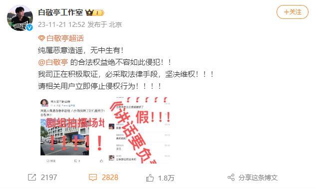 白敬亭工作室微博辟谣内容: