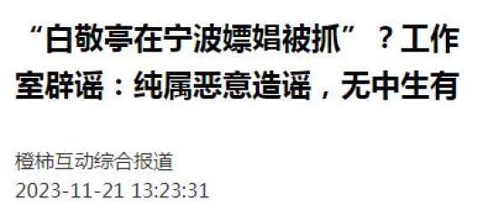 21日,“白敬亭工作室辟谣”话题冲上热搜第一。近日有两则网传消息称:演员白敬亭在北仑嫖娼被抓。对此,白敬亭工作室微博发文辟谣。