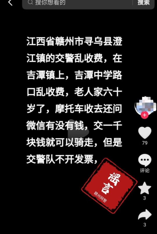 2024年1月11日,网民张某某为泄私愤,故意编造谣言视频发布在某短视频平台,视频内容为“江西省赣州市寻乌县澄江镇的交警乱收费,...交一千块钱就可以骑走,但是交警队不开发票”。该网络谣言对公安机关执法公信力和社会法治环境造成严重损害。