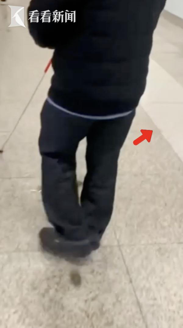(乘客拍摄画面) 经实地核查 2号线徐泾东站 设有符合标准、完整连续的盲道 可以为视障乘客提供无障碍通行服务