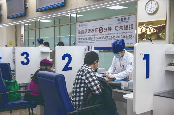 昨天下午,浙江省人民医院,患者进行抽血检验。