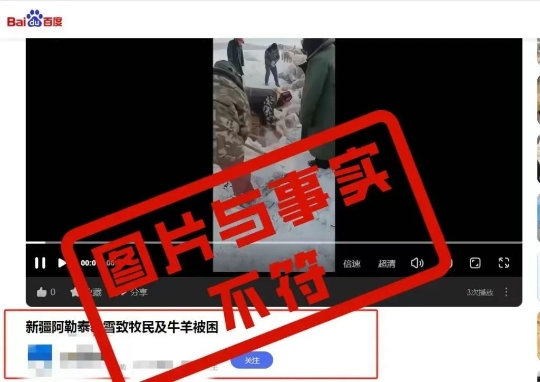 发布者搬运网络图片,与此次极端天气无直接关联 2月20日,新疆阿勒泰地区雪都融媒发布《新疆富蕴县强寒潮天气已减弱 此次天气过程未造成人员和牲畜伤亡 冬羔生产工作有序进行》。 请各位网民 不随意转发、扩散 来源不明、未经证实的信息 携手共筑风清气正的网络空间 来源:“新疆网络辟谣”微信公众号、阿勒泰网络举报 作者: 编辑:李佳萌 |