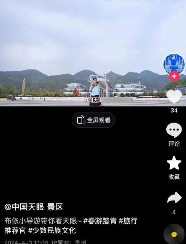此外,贵州“中国天眼”景区对外开放参观,4月3日,景区官方账号还发布了最新导引视频,对天眼瞭望台和天文小镇进行了介绍。
