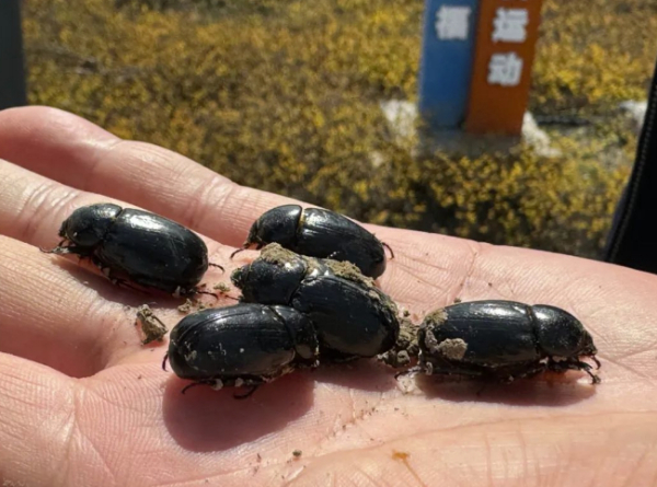 图为疑禾犀金龟 真相:近日,新疆生产建设兵团143团(驻地在新疆石河子市附近)文化体育广场再现大量黑色昆虫,部分群众担忧这是灾难或是地震的前兆。对此,石河子大学农学院植保系副教授雷勇辉表示,此昆虫为疑禾犀金龟,大量出现符合其生物习性,属于正常现象,“每年开春气温回暖时,疑禾犀金龟就开始羽化出来了。每年这个时间是它繁殖的季节,跟地震和其他的一些自然灾害现象没有任何关系。”据了解,疑禾犀金龟已不是第一次在此出现。2023年4月中上旬,在143团及石河子市区也出现了大量疑禾犀金龟。(来源:“石河子零距离”微信公众号)