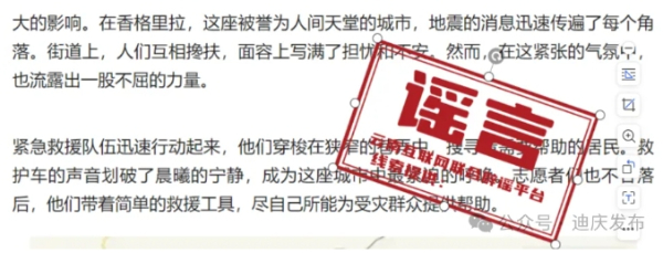 (本次地震未收到被困人员信息,其他描述夸大事实)