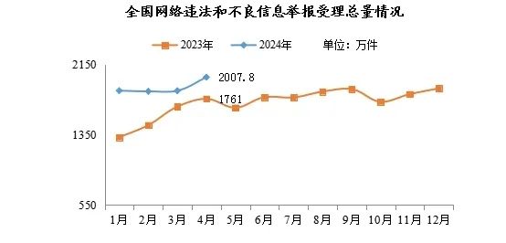 2024年4月全国受理网络违法和不良信息举报2007.8万件 2024-05-31 15:36