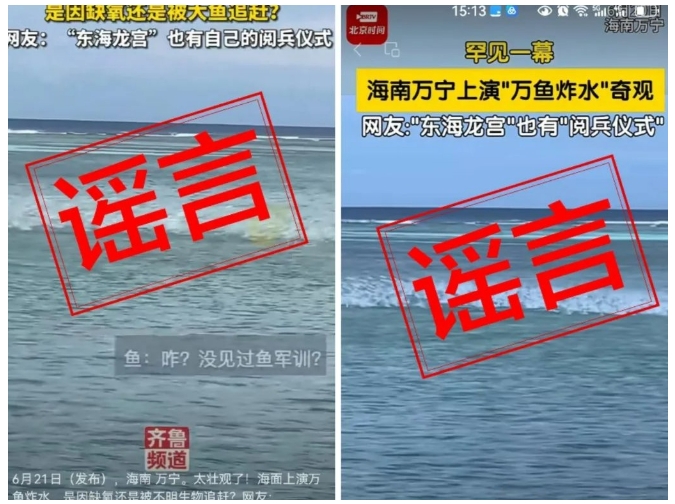 近日,有博主发布“海南万宁海域出现‘万鱼炸水’奇观”的视频,且该视频被多家媒体转发,引起广泛关注。6月24日,记者从海南省万宁市委网信办了解到,该视频为“老五钓鱼(lure)”抖音号发布,内容为转载国外拍摄,拍摄地点非海南万宁,其发布视频中并未提起视频拍摄地在万宁。