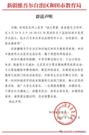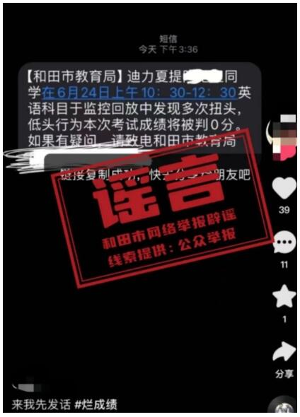 经新疆和田地区和田市教育局核查,该单位从未发布过类似信息,系网络谣言。