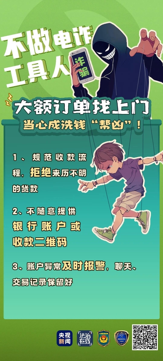 2.不要随意提供自己的银行账户或收款二维码,避免无意中成为诈骗分子洗钱的工具;