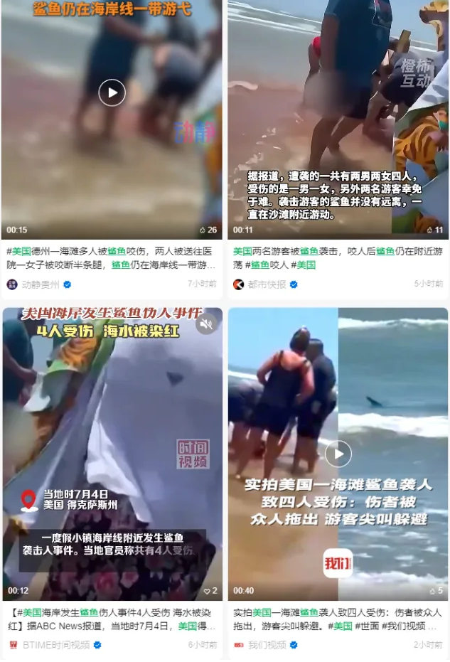 新闻一搜 原来这是发生在7月4日 美国德州一海滩鲨鱼袭击4人受伤 多个新闻媒体已有报道